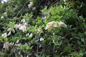 Elle apporte une floraison exceptionnelle en bouquets de fleurs blanches en mars avril dégageant une fort parfum de fleur d'oranger et de vanille.