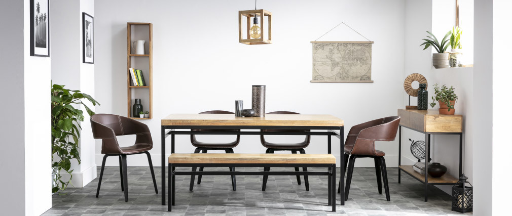 View Table A Manger Industrielle Pics Table à manger industrielle acier et bois madison. Avec un plateau en bois massif et une structure en métal, la table à manger industrielle sait s'imposer comme étant la pièce maîtresse de la salle à manger. Associant le métal et le bois, ces surfaces disponibles en différentes formes apportent une ambiance toute particulière qui s'adaptera aux styles décoratifs résolument modernes. Finis les tables avec les éraflures et du bois qui change de couleur avec le temps et vous vous les fauteuils de salle à manger en métal préservent le confort de rester sur le thème de votre maison avec une touche industrielle, elle se sent très naturelle et. La table à manger industrielle est décorative. La table de la salle à manger est un meuble qui réunit famille et amis.