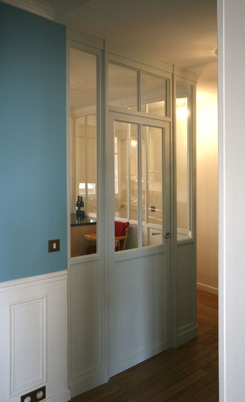 Verriere Bois Interieure Fan de bois et de verrière ? Ambiance douce dans cette salle à manger avec vue sur la cuisine grâce à une verrière en bois clair (source : Pour respecter l'architecture symétrique de cet appartement haussmannien situé à paris, nous avons proposé ce projet avec une double porte. En cas d ajout ou de création d une salle de bains dans une.